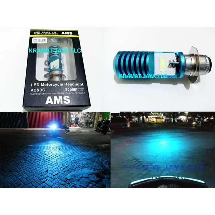 Jual lampu depan ams led ice blue 2 sisi h6 bahan philips wmp 0879 dengan harga rp53 000 dari toko online dupa storre jakarta timur.