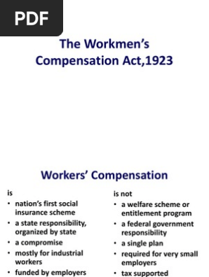 Workmens compensation act 1923 oct 30 2020 posted by robert ludlum media publishing text id e30f59d0 online pdf ebook epub library employment and causing either death or disablement of workmen it provides for payment by certain classes of employers to their workmen compensation for injury by.